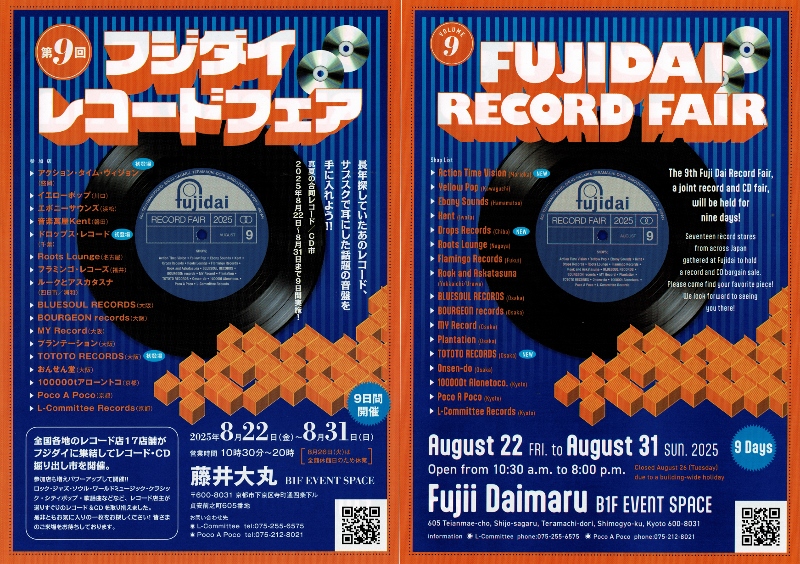 8月22日から31日まで京都藤井丸フジダイレコードフェアがあります