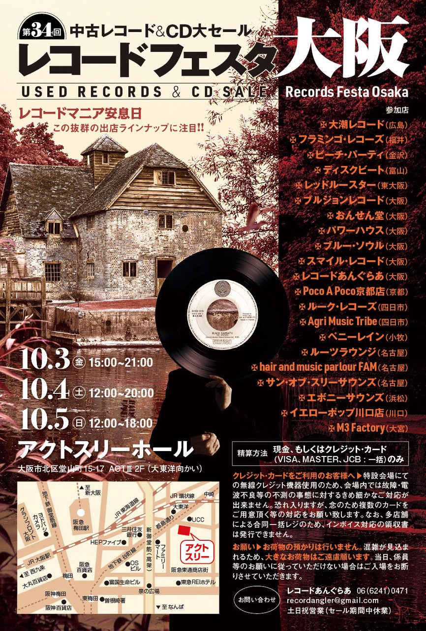 10月3日から5日まで恒例の大阪レコードフェスタがあります
